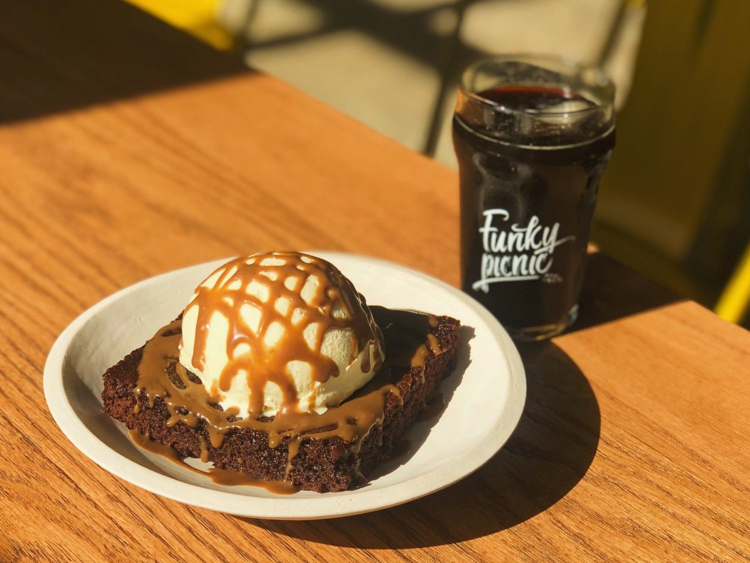 Two Peanut Butters, One Cup is a milk stout with chocolate malt and peanut butter. The number one thing to remember when cooking with beer is complimentary flavors. You want to find beers that compliment your dish without overpowering it. Stouts have rich, chocolatey flavors that pair well with rich, chocolatey dishes like a warm brownie.